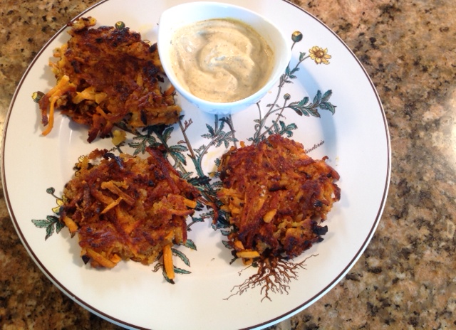 A second chance for the oh-so-sweet, sweet potato…no marshmallows with these; just our good old friend, maple syrup. A nice balance of sweet and spicy (there’s that combination again) but not overly sweet, plus the Greek yogurt makes a rich counterpart. These cakes will scorch when you’re not watching…so look alive and practice your wrist flipping skills. Just in time for Passover/Easter …wow the elders with these faux latkes.