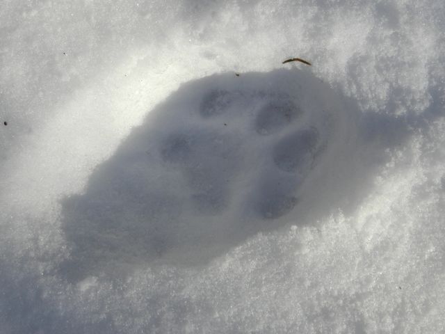 Closeup of the bobcat track. There are a few points of difference between the bobcat and fisher cat tracks.