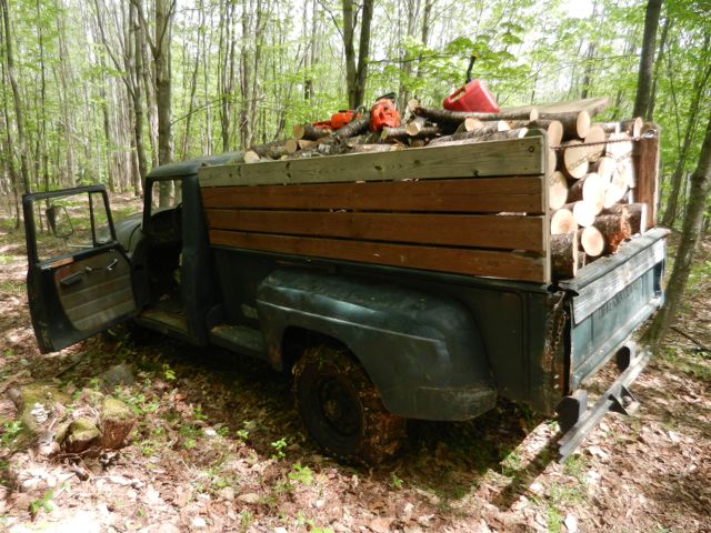 TURN, TURN, TURN, TURN: Apple blossoms, dandelions, and the turn into preparation for Season 2016. Yesterday, the now-functioning truck (Old Blue) was backed into the wood shed with the first load of freshly-cut wood.