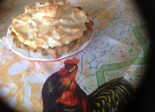 - Remove wax paper and pour custard filling into the prebaked shell. Top w/meringue. Place in oven and bake until meringue is nice and brown, about 15 minutes.