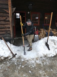 The tapping team raced against the weather. Instead of urging the team to tap faster, we just added athletes to the team. On that final day, the team was up to seven (Ross, Metzi, Robyn, Bob, Cy, Lew, Audrey). On other tapping days, bit players included Christian, Carly, Emily, Kelly, Leah, and Lori.