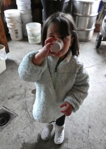 LATER: I’m back in the sugarhouse tasting the syrup. “Toffee.”