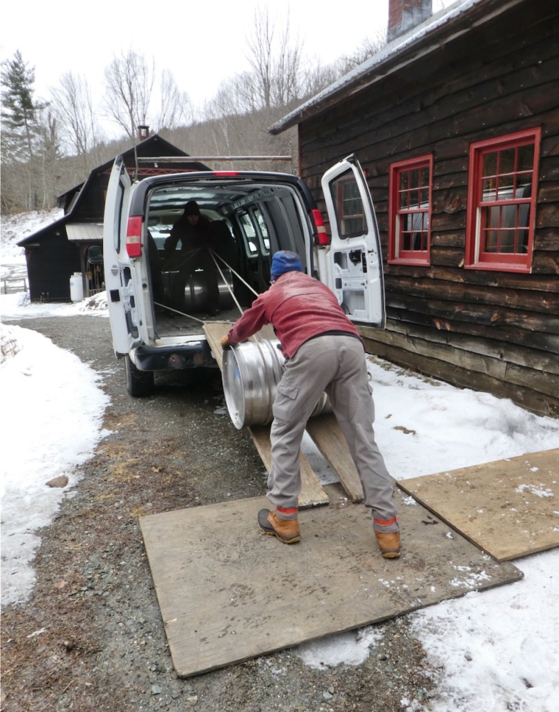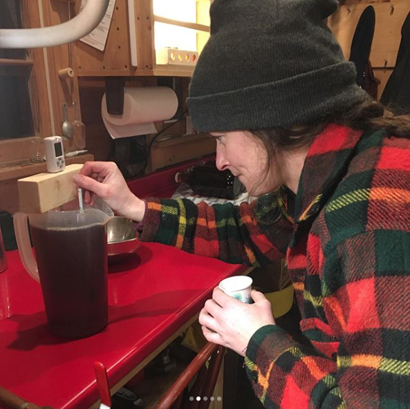 Does the crew ever eat well! First MTL brought us Northern Tacos (an upcoming blog post), then Anne dropped off a comfort-food casserole called MoreMore, and the next evening Nina arrived with gourmet chicken and veggies and a maple walnut pie in a chocolate crust. Today features Tim’s quiche Lorraine for On-The-Go-Sunday Brunch between morning chores and boiling. We feel so grateful.