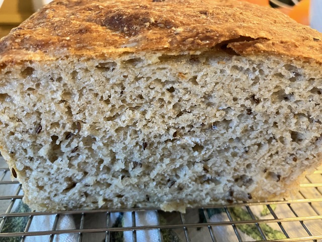 I don’t think I’ve made any maple recipes that have caraway as an ingredient, but I’m glad I decided to try this. It’s a combo you won’t want to miss. And of course, if you’re not a caraway fan, feel free to omit. This easy, one loaf bread is tangy, with a hearty, chewy texture, and with just the right amount of sweetness. It was so delicious, I’m making another loaf….what with St. Paddy’s Day only a few weeks away, it’s made for corned beef sandwiches.