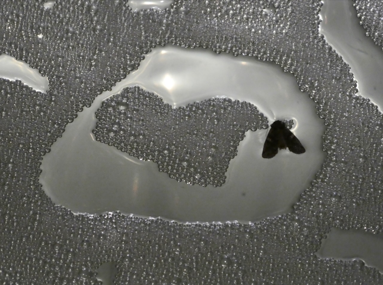 NITER NOTES: The niter is heavy: It precipitates out of the boiling sap like beach sand. We call it sugar sand. Judging by the large scoopfuls of it in the front pan, we’re in mid-season.