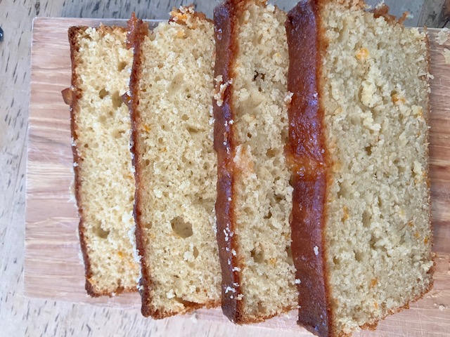 If you’d like to glaze, stir marmalade or jam w/1 tablespoon water and heat until it just comes to a boil. Using a pastry brush or spoon, cover the top of the loaf with the glaze. Allow to cool at room temp before slicing. Wrapped well, it keeps for about 4 days at room temp. After that, it’s always good toasted lightly.
