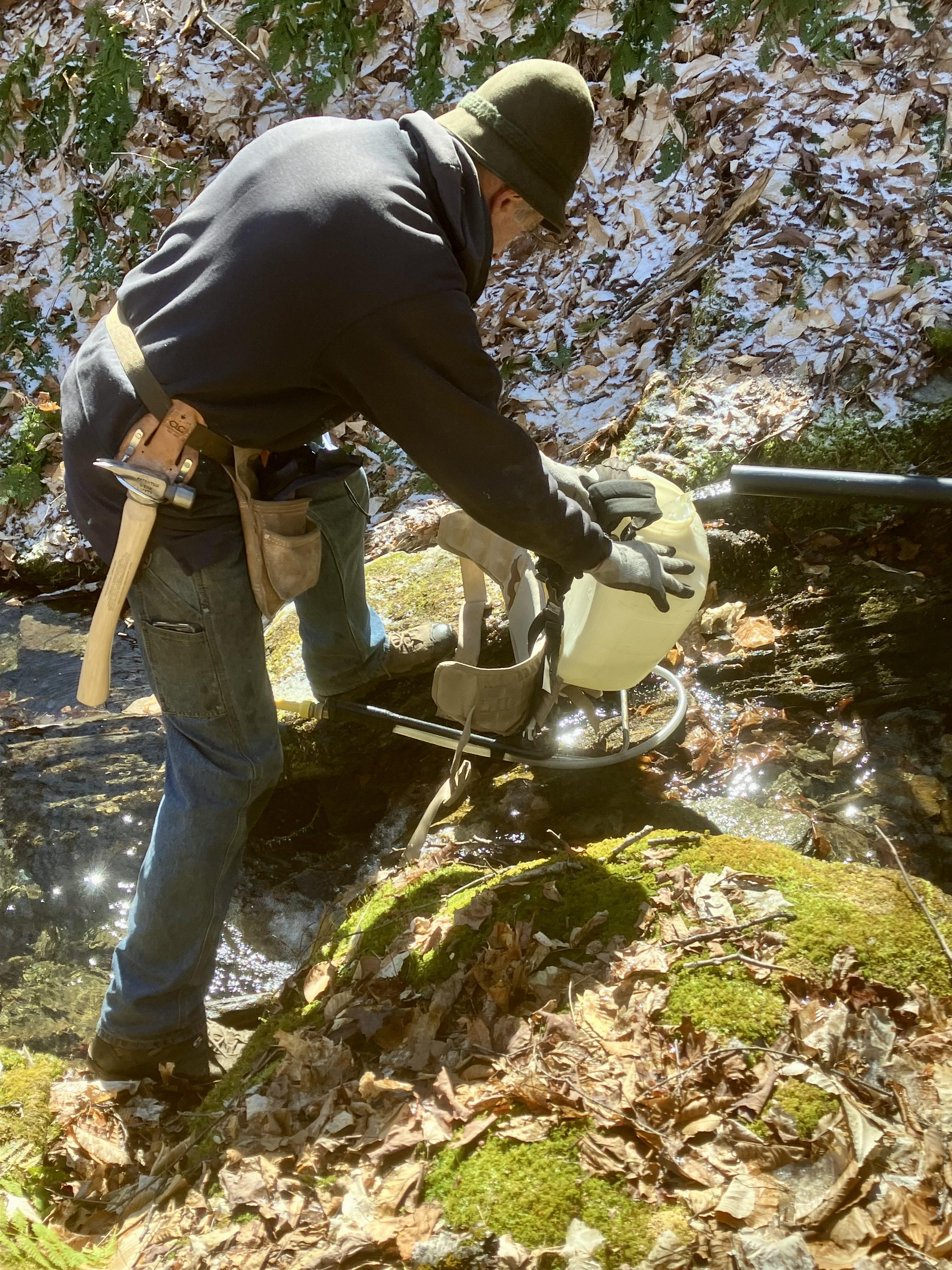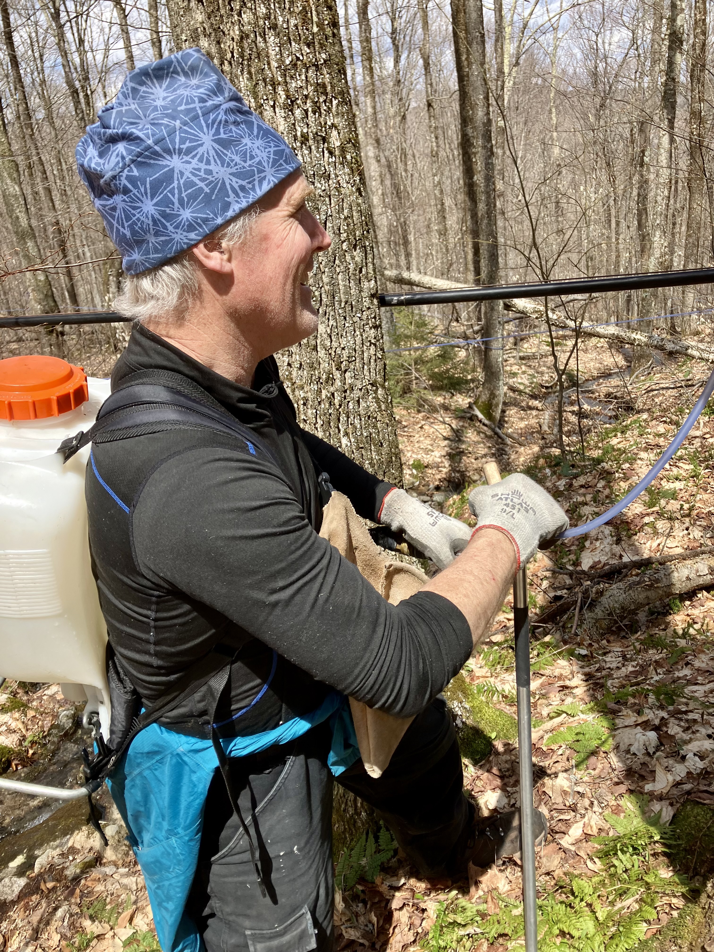 Note the fruit sprayer on Charlie’s back, adapted to squirt rinse water into the tubing. [LL photo]