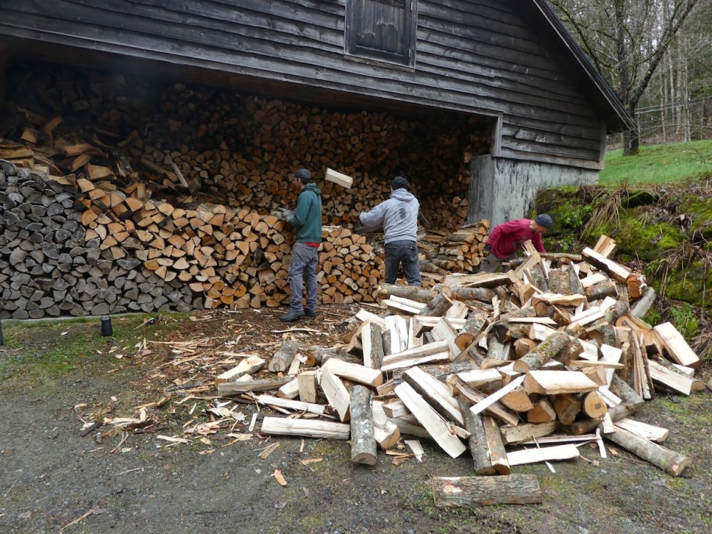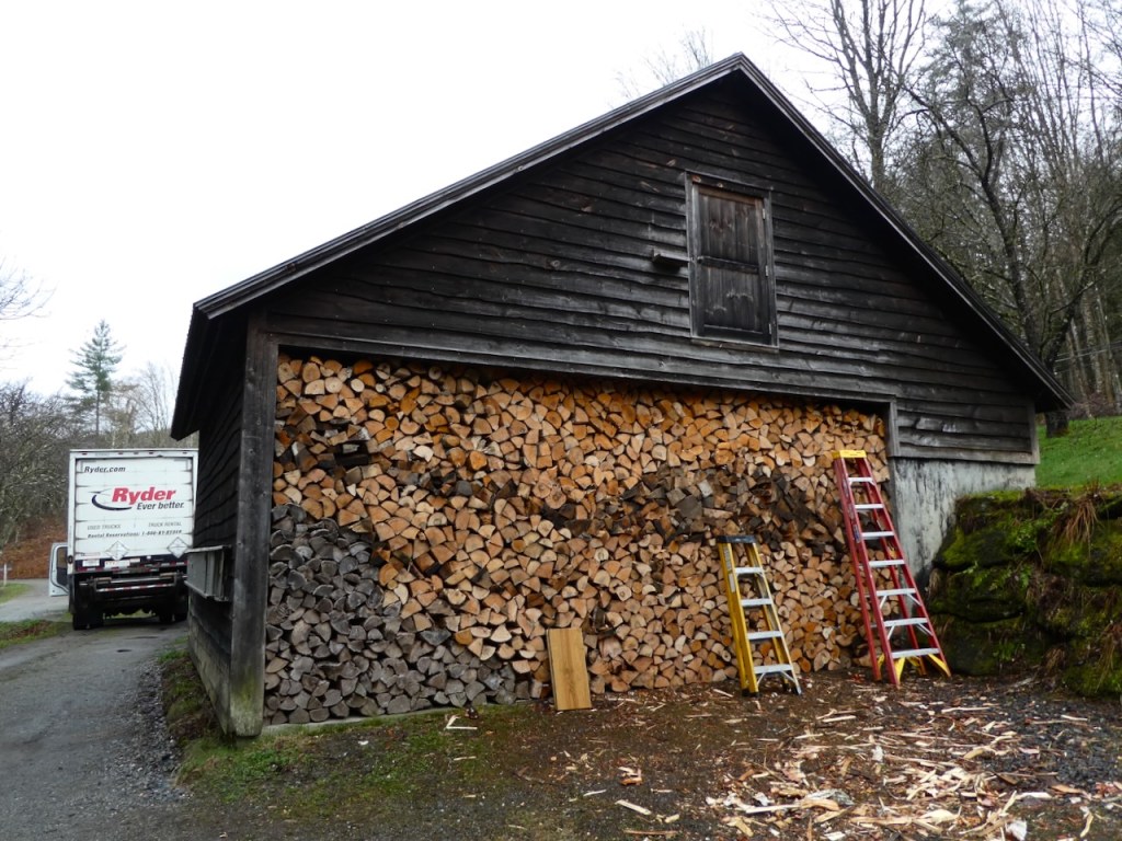Since we made a lot of syrup this year, we needed 18 cords of wood, mostly purchased, to fill the woodshed. [LC photo]