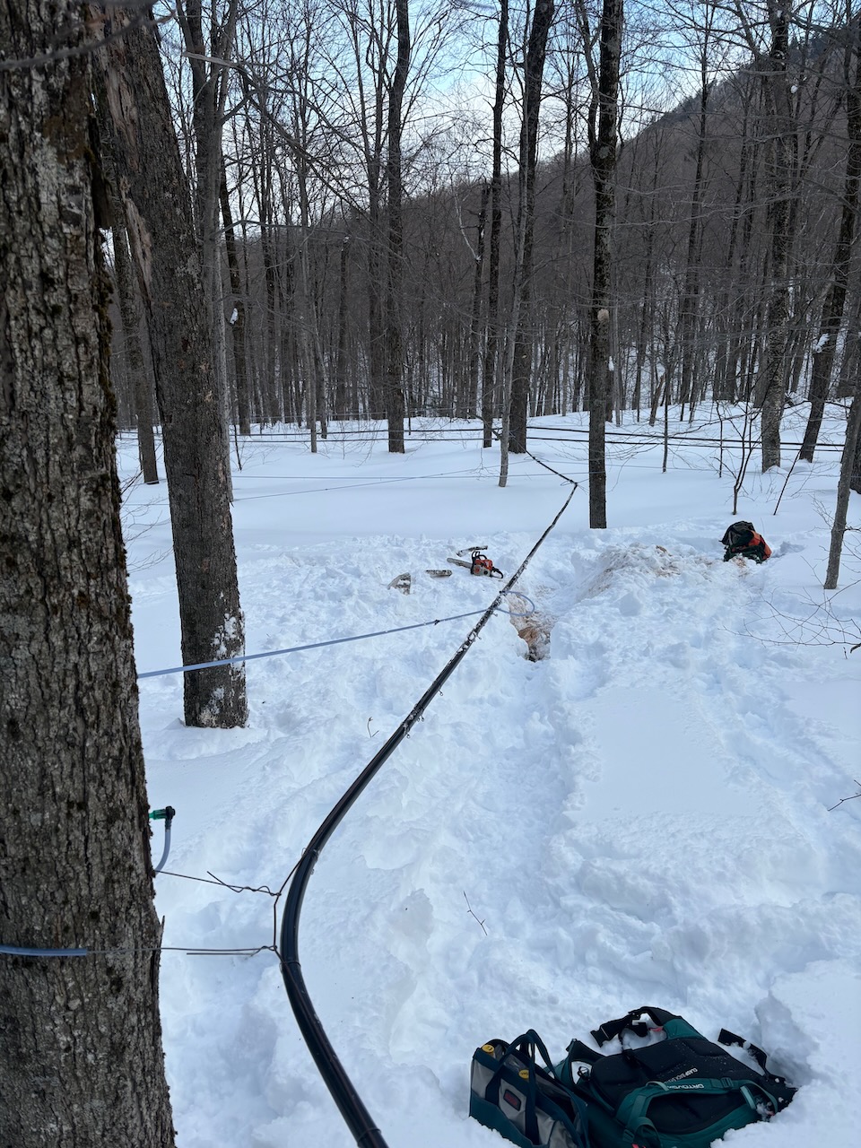 TAPPING STATUS: Finished. Though tapping took longer due to trudging through the snow, the crew finished before the first run, unlike in 2024.