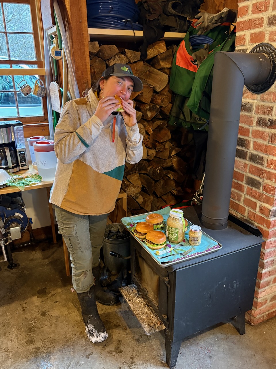 The blog’s longtime food correspondent, Maple Trout Lilli, is back in the kitchen experimenting with maple. We’re glad she is, not least of all because she’ll stop by the sugarhouse with a tray of her latest creation for the crew to feast on.