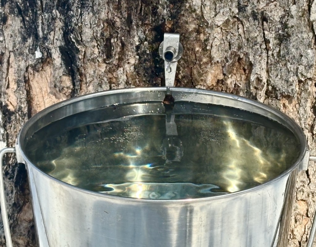 “So, TK, looking ahead, are there any freezing nights in the forecast?” He stands in the driveway with his back to the old maples where the three sap buckets hang.